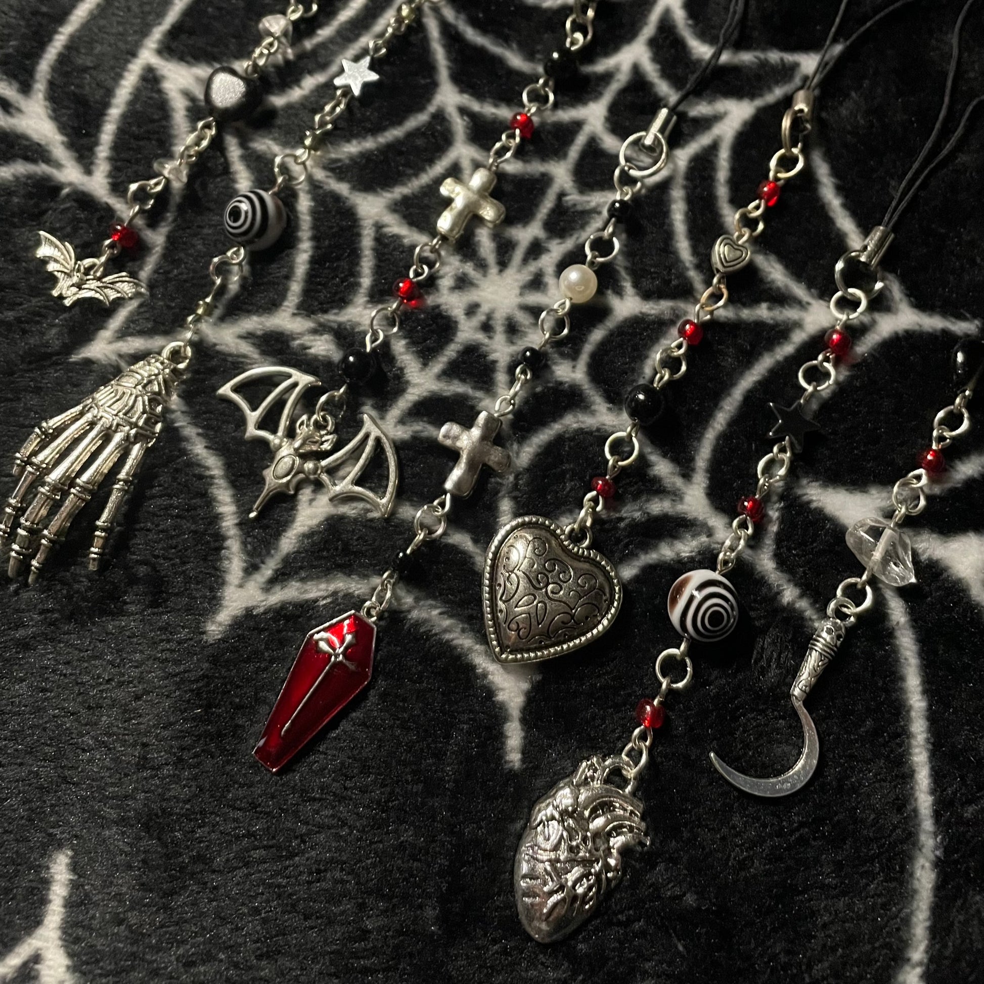★ Phone charms featuring a variety of gothic, silver, and black beads!